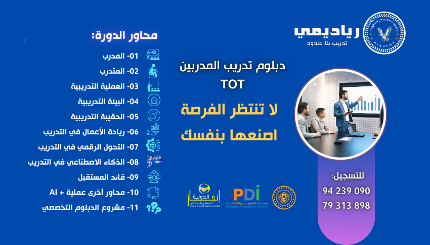 🔹 هذه فرصتك للانطلاق نحو النجاح! لا تفوت هذه الفرصة الذهبية لتصبح مدربًا مؤثرًا في مجالك.